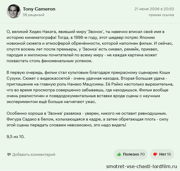 Отзывы с Кинопоиска о фильмах «Звонок»